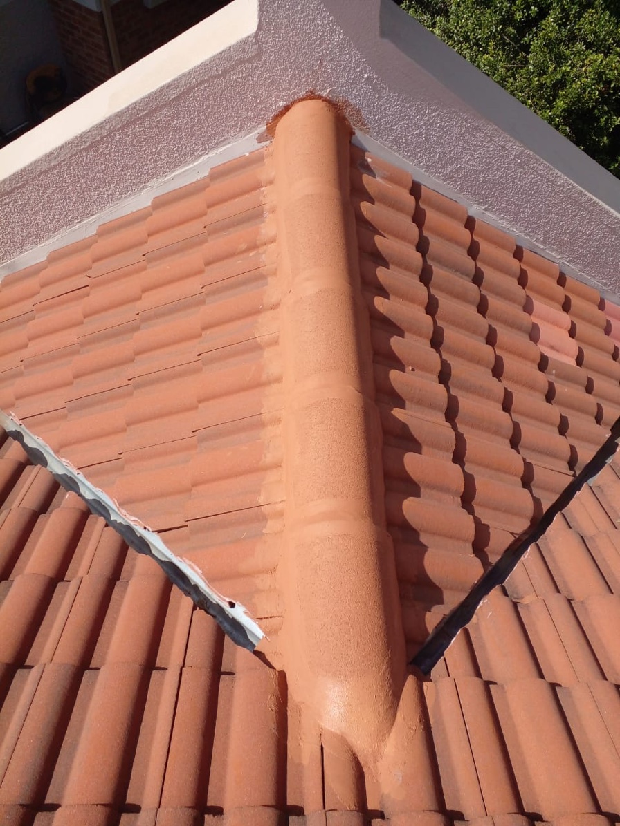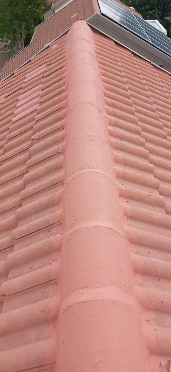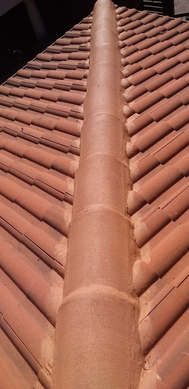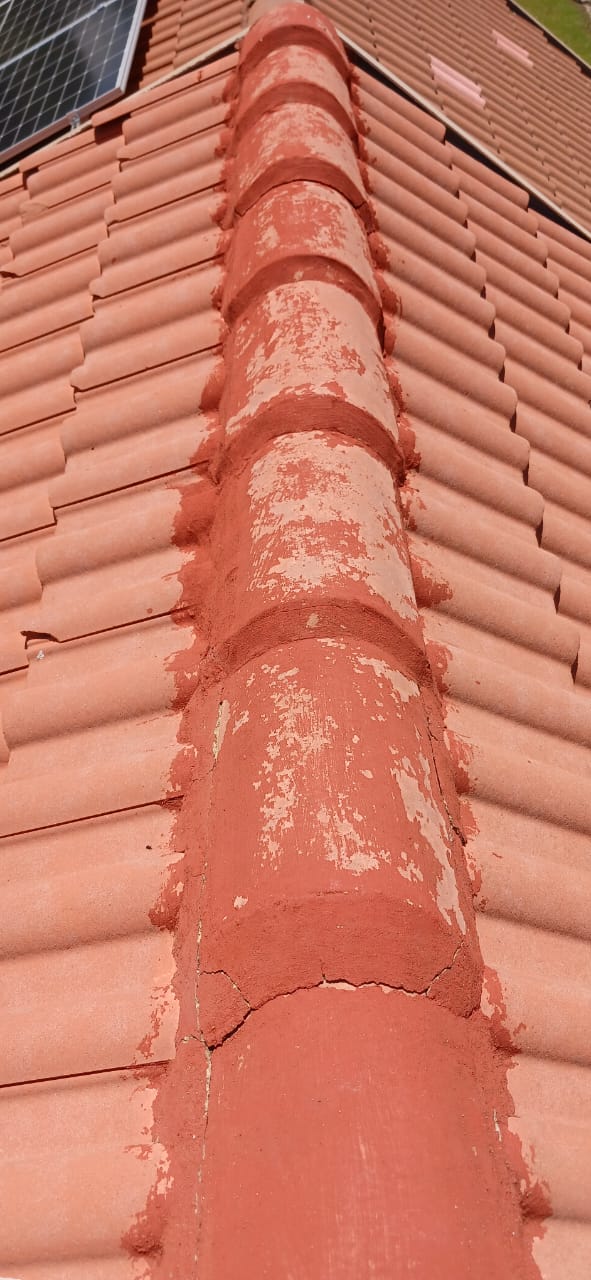 Supply and application of a 3:1 mortar mix, tinted with roofing oxide to match the roof colour over ridges.(50% water, 50% plaster key cement additive)