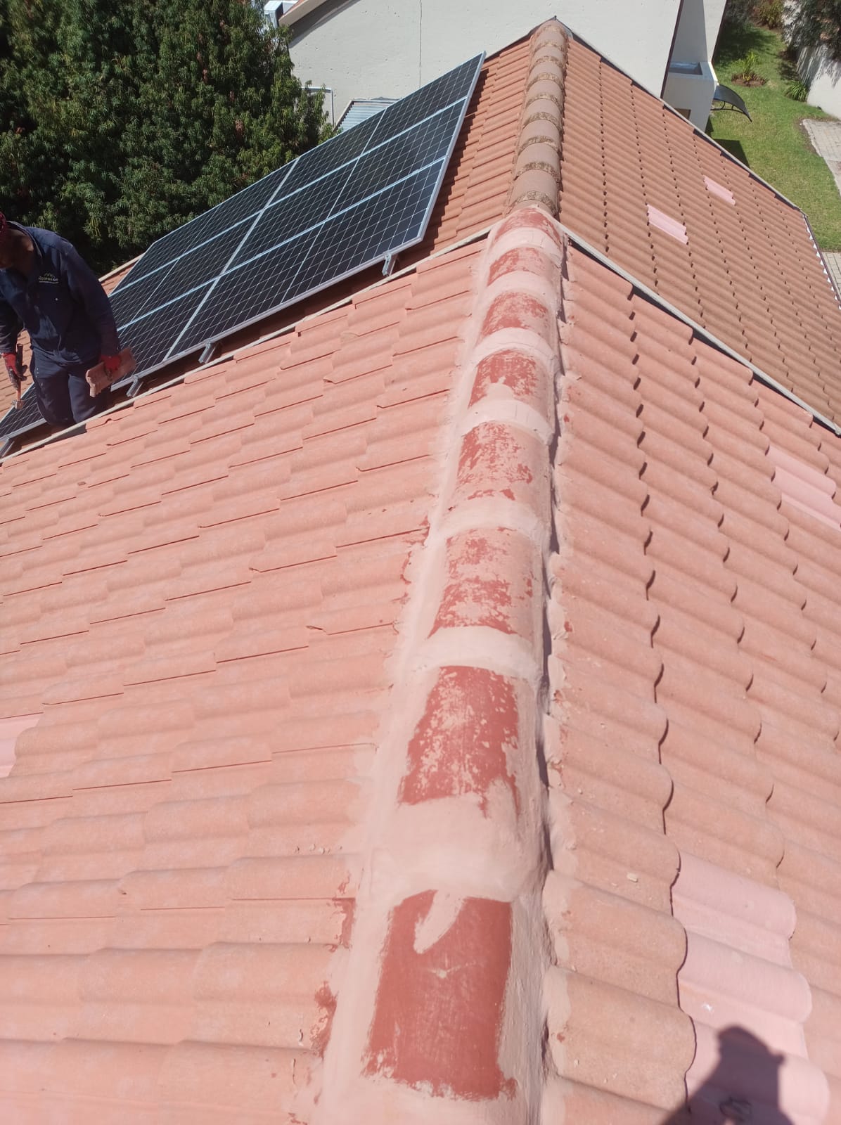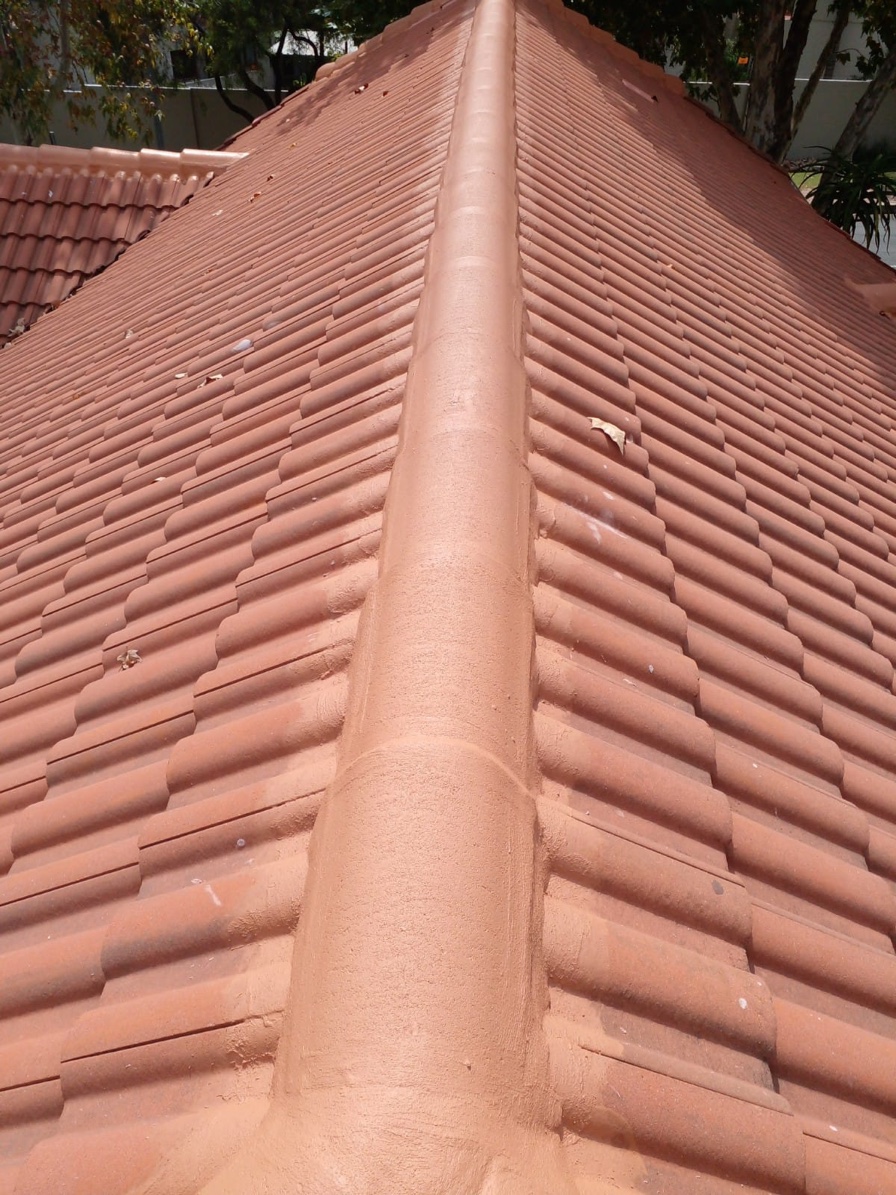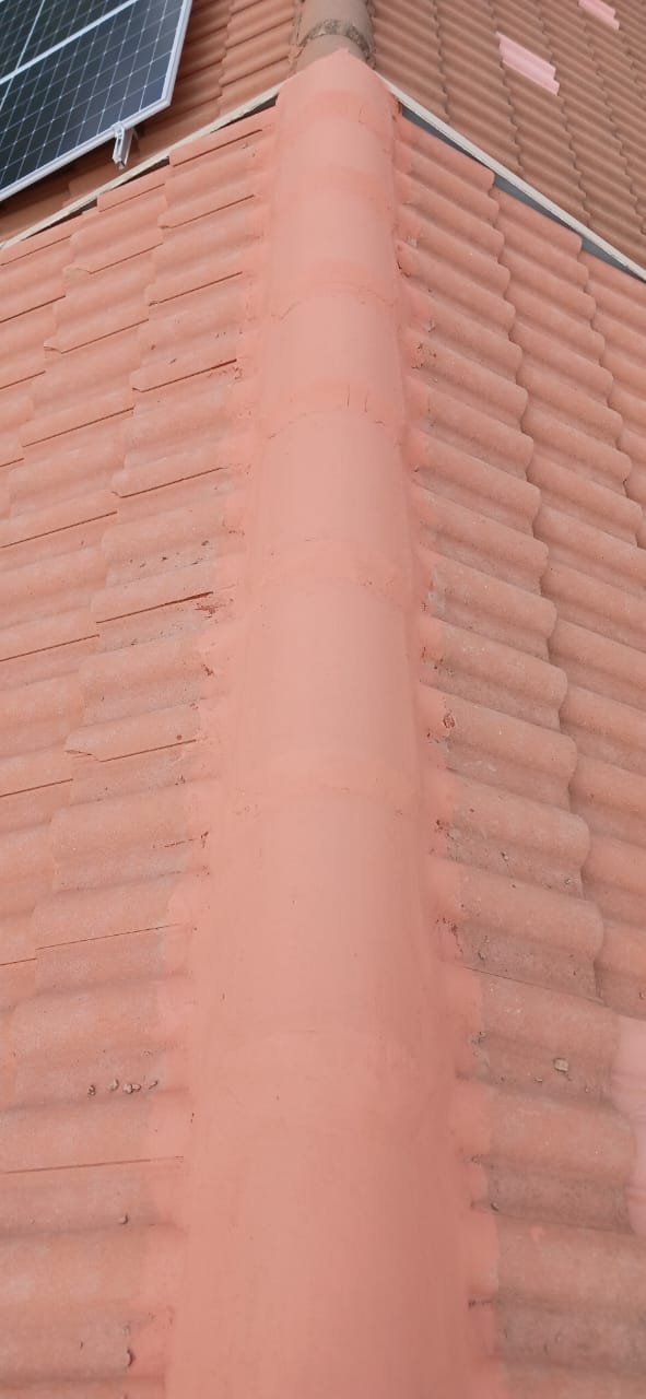 Supply and application of a 3:1 mortar mix, tinted with roofing oxide to match the roof colour over ridges.(50% water, 50% plaster key cement additive)